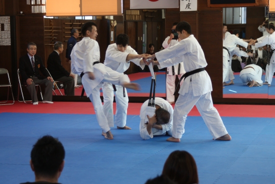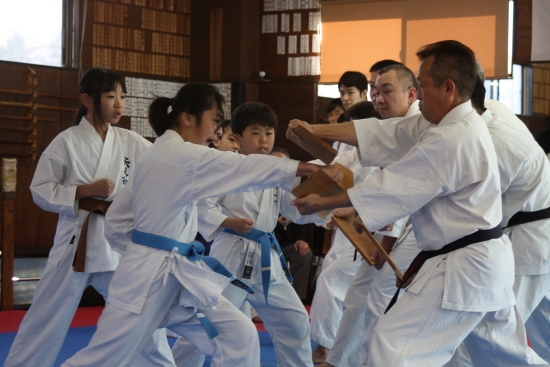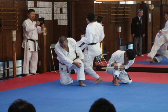 | The ceremony of a Dan certificate 令和7年1月13日:総本部 13 January, 2025 Honbu Dojo 師範代2名、指導員1名、指導員補補2名の称号を授与しました。 Title certificates were awarded to two Shihan-Dai, one Shidoin, and two Shidoin-Ho. * Shidoin/instructor 「師範代 Shihan-Dai 」 ・遠藤 宏行 Hiroyuki Endo ・小菅 英一郎 Eichiro Kosuge 「指導員 Shidoin 」 ・下田 達也 Tatsuya Shimoda 「指導員補 Shidoin-Ho 」 ・二宮 哲夫 Tetsuo Ninomiya ・小山 聡史 Satoshi Koyama ![]() |