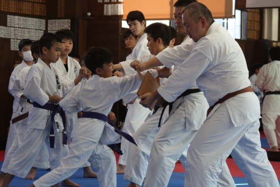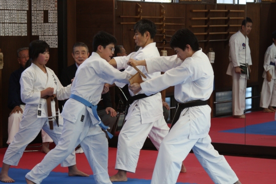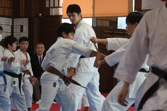 | The ceremony of a Dan certificate 令和7年1月13日:総本部 13 January, 2025 Honbu Dojo 師範代2名、指導員1名、指導員補補2名の称号を授与しました。 Title certificates were awarded to two Shihan-Dai, one Shidoin, and two Shidoin-Ho. * Shidoin/instructor 「師範代 Shihan-Dai 」 ・遠藤 宏行 Hiroyuki Endo ・小菅 英一郎 Eichiro Kosuge 「指導員 Shidoin 」 ・下田 達也 Tatsuya Shimoda 「指導員補 Shidoin-Ho 」 ・二宮 哲夫 Tetsuo Ninomiya ・小山 聡史 Satoshi Koyama ![]() |