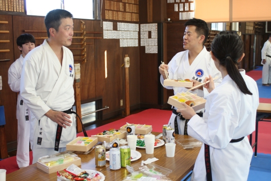 | 2025 New Year's party 令和7年1月13日:総本部 13 January, 2025 Honbu Dojo 今年も会員と保護者が、より親睦を深める目的で新年懇親会を開催しました。 総本部と指導部が合同で計画して実行しました。 目的通り、指導部と一般会員および保護者が和やかに歓談した新年会になりました。 The member and the guardian held the New Year's party this year also in order to promote friendship more. Honbu Dojo and Shihan-Kai jointly made the plan and performed. Shihan-Kai ( instructor ) , the member, and the guardian ( parent ) became the New Year's party which had a pleasant talk peacefully as the purpose. |
